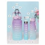 Sports Water Bottles 3 Pcs Set With Motivational Time Marker & Leak Proof Flip Top Lid (random Color)